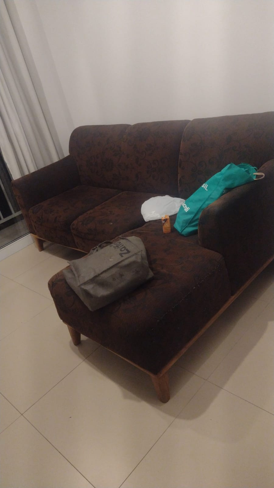 Tem que desmontar o sofá pra poder tirar.