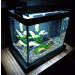 De preferência um aquário retangular grande, mais ou menos entre 80 e 120 cm de comprimento. Pode ser usado ou antigo, não precisa estar perfeito.