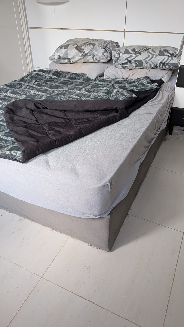 -cama boxe casal com colchão, mas tá sem os pés, que quebraram.