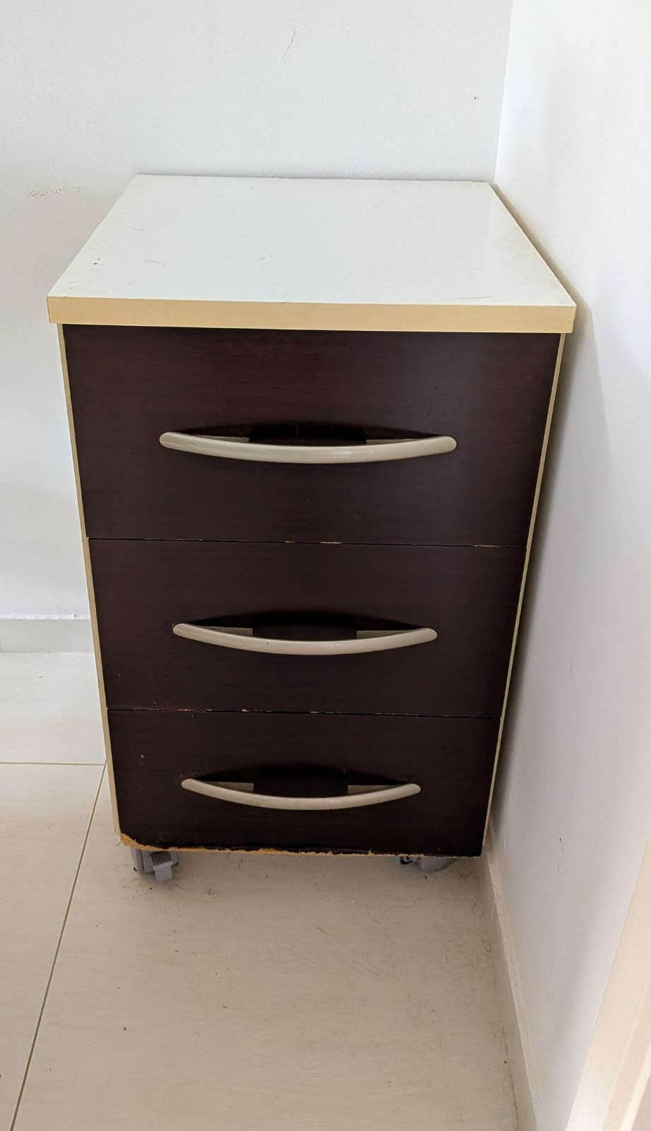 - gaveteiro- a base da última gaveta tá machucada e uma das rodinhas sai do lugar.