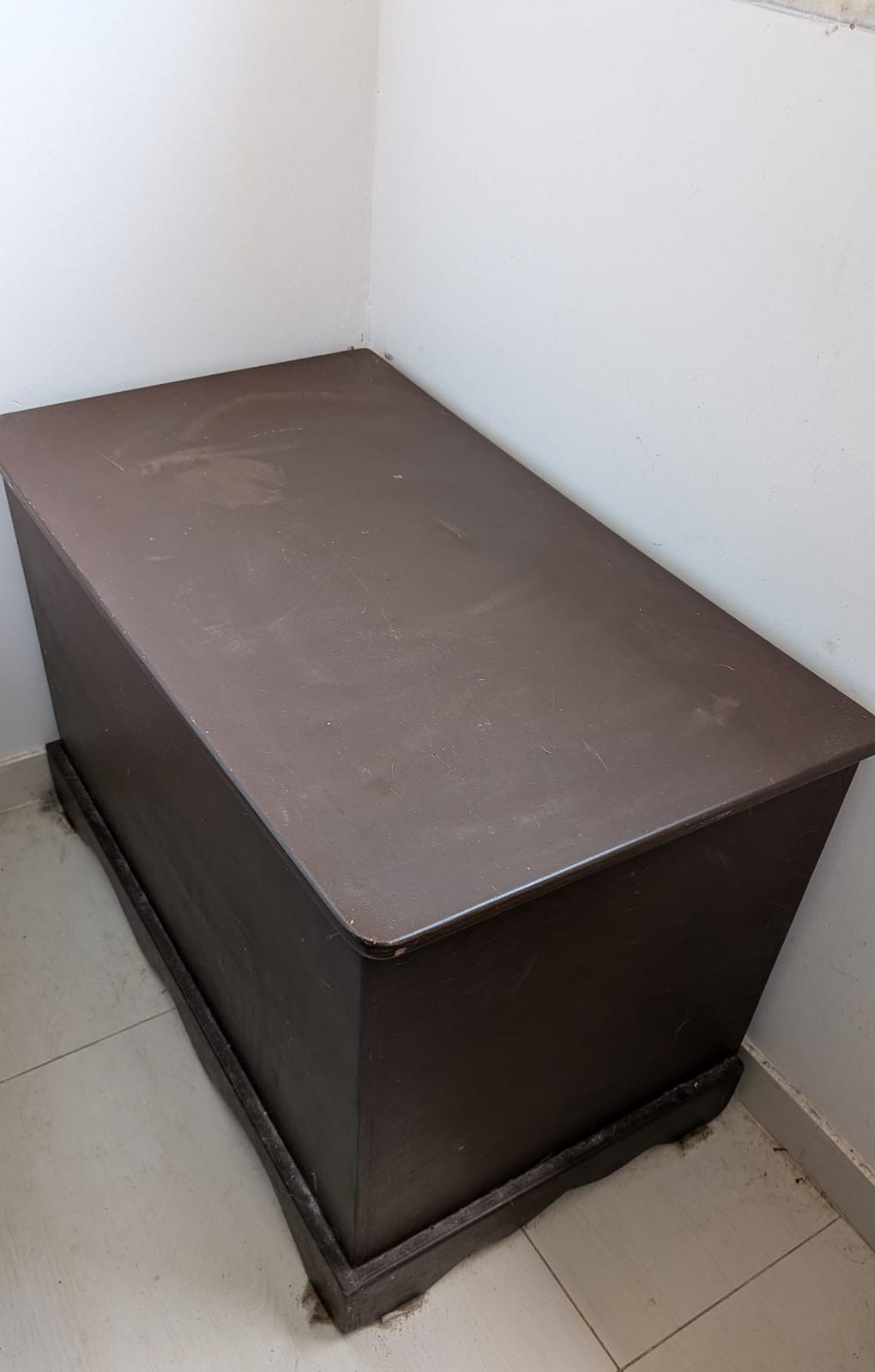 -baú tá com o tampo meio empenado, e um pouco machucado em cima, mas um óleo de peroba ou verniz deve arrumar.