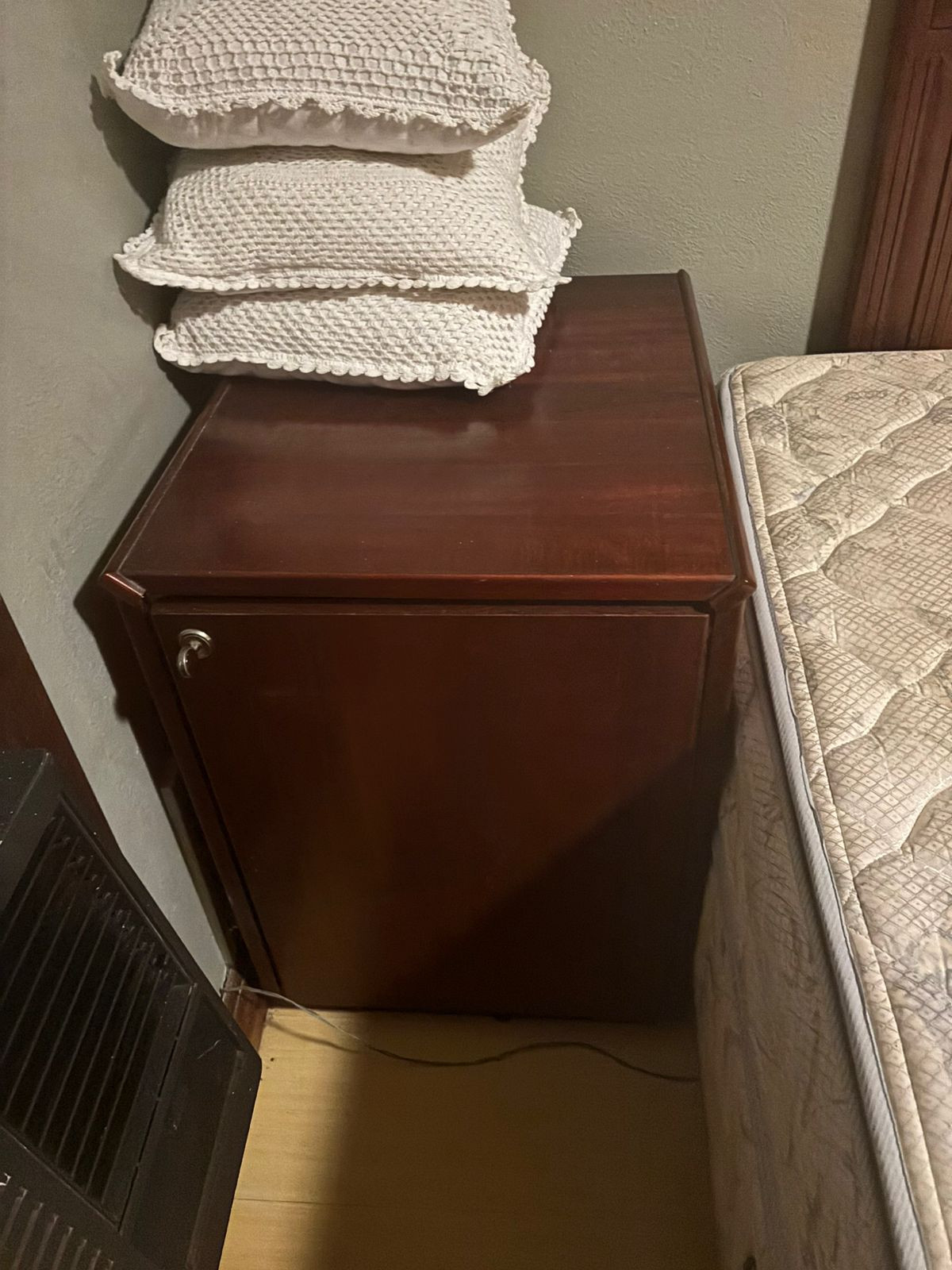 Mesa de cabeceira estilo armário, com porta